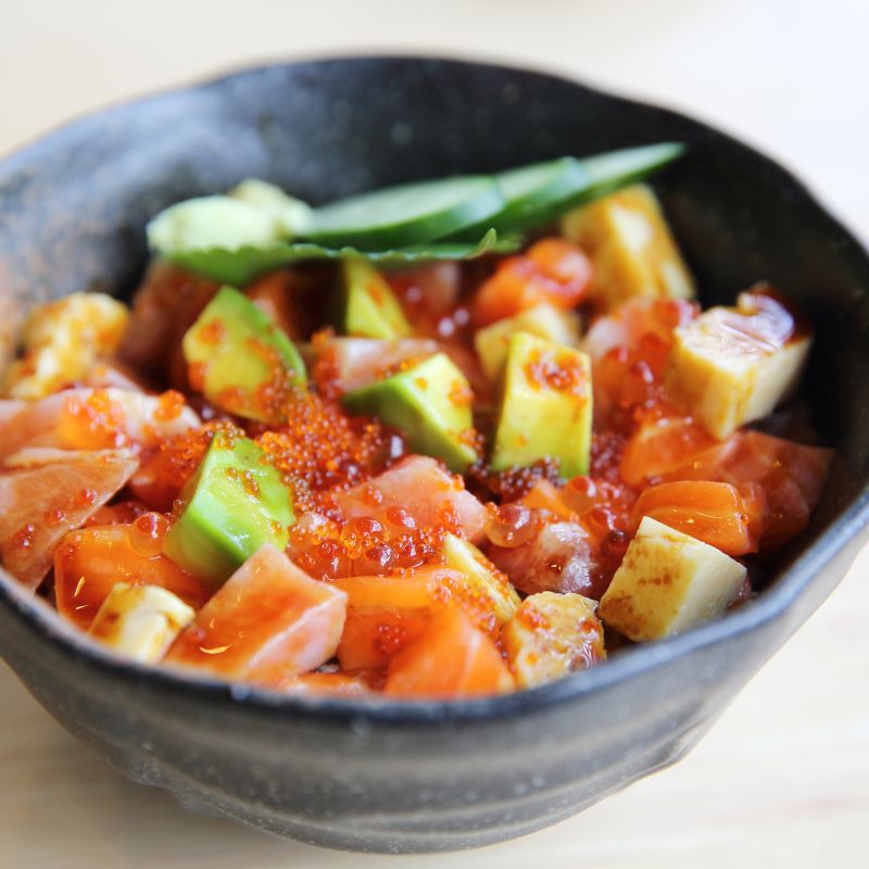我們精選最新鮮的頂級挪威三文魚,以專業手工切割成細緻的魚粒(切成1-1.5厘米方粒)。每一粒都散發誘人的三文魚香氣,口感鮮嫩多汁,是非常適合作為料理食材的優質選擇。